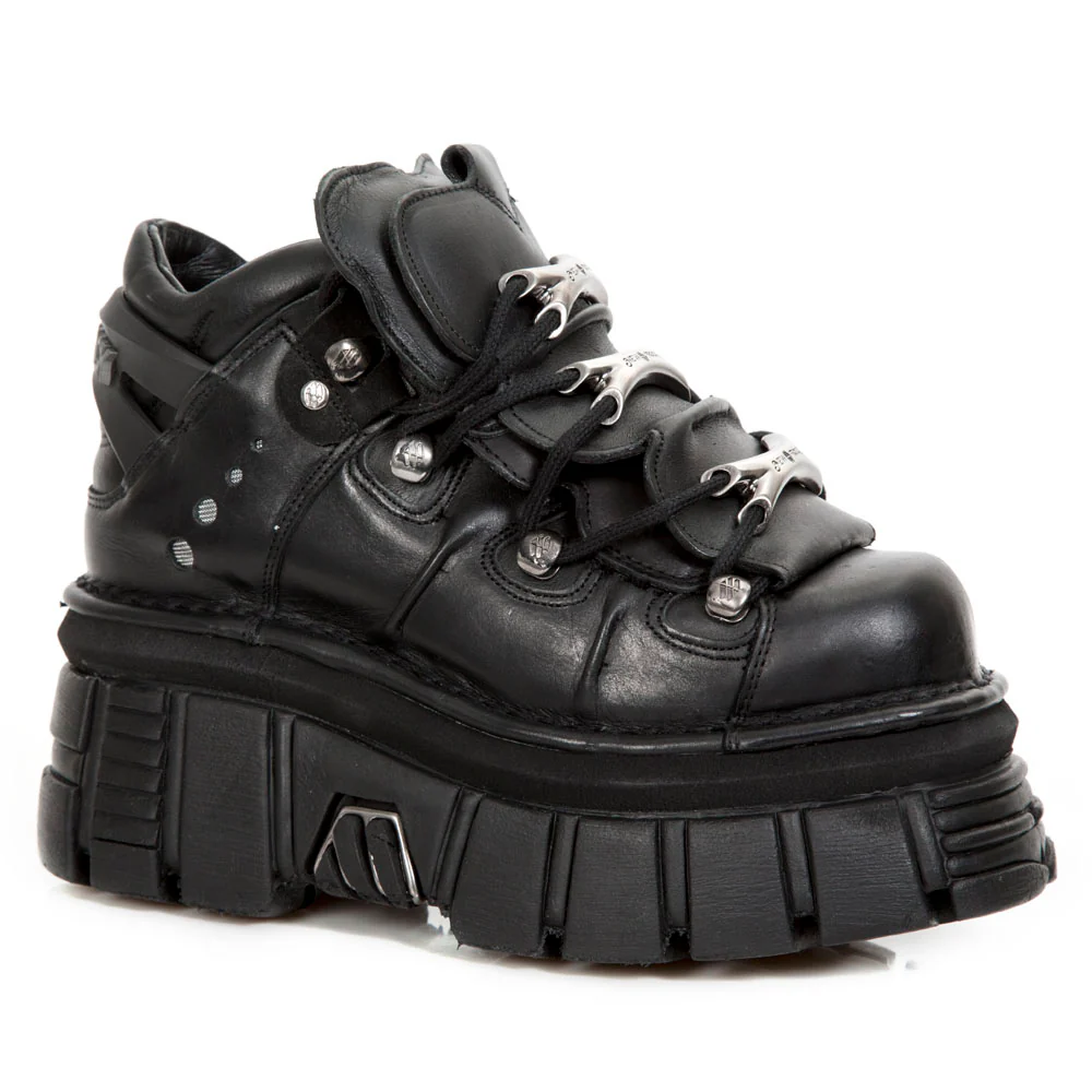 Elevate your style with the M-106-S29 from New Rock's METALLIC collection. This iconic real leather ankle boot boasts metallic bone adornments for the laces, merging fashion-forward design with the brand's extreme power.