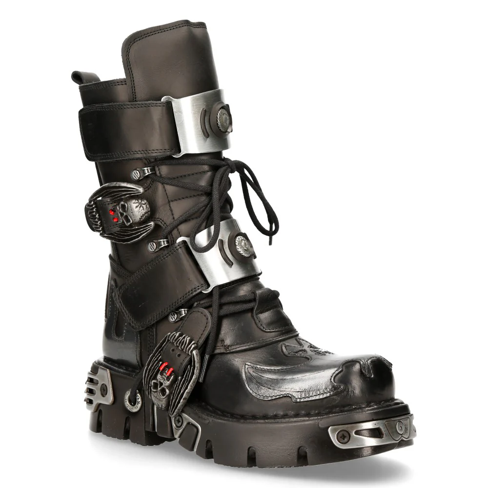High boot from the METALLIC collection, made with high-quality synthetic material. Showcases a gothic and metallic design, combining fashion and rock elements. metallic-m-195-s4)