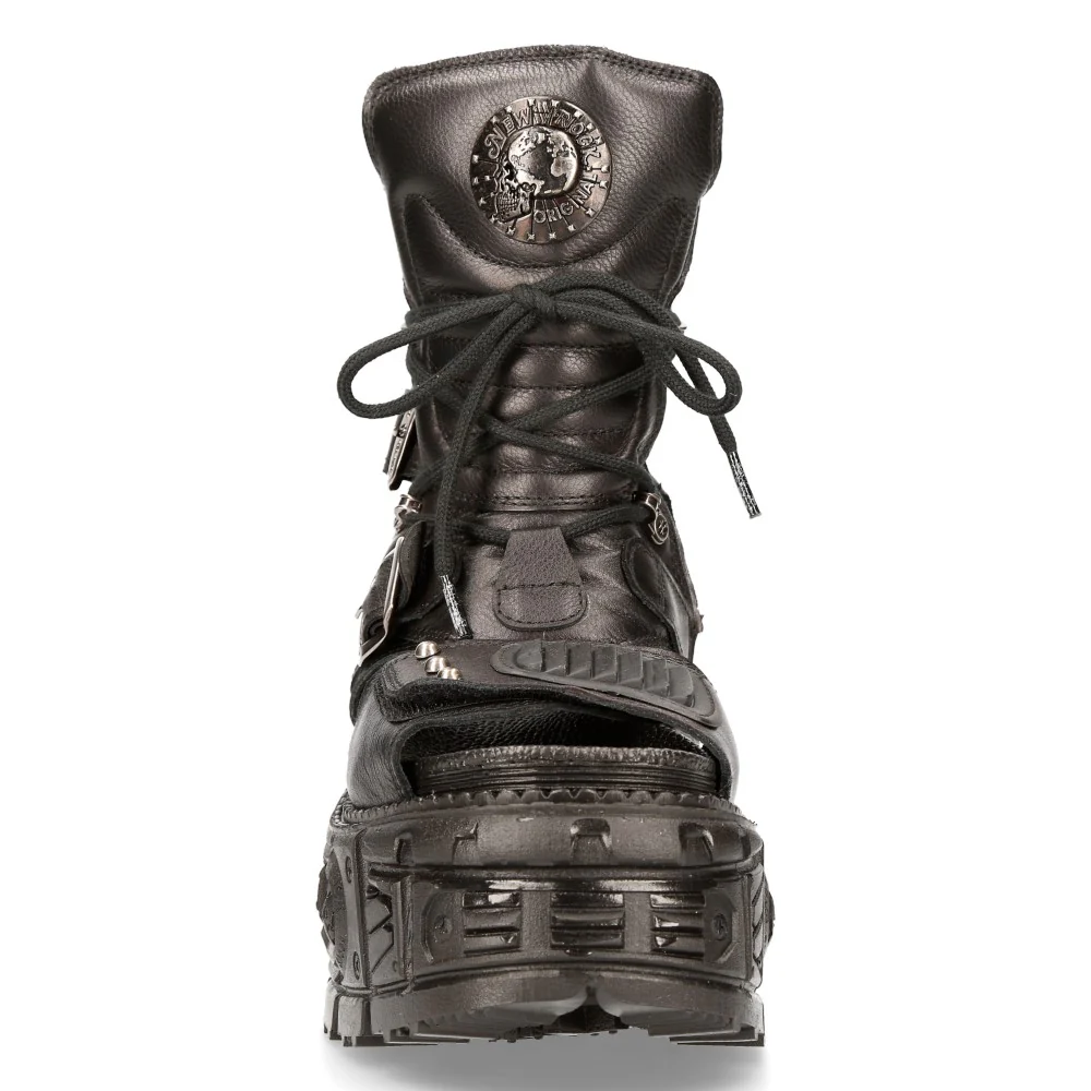 Ankle boot from the METALLIC collection, made of genuine leather. Showcases a new punk and rock design with gothic and metallic styles, reflecting New Rock's extreme original power. ankle-boot-black-tank-m-bios107-c3)