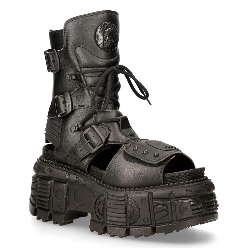 Ankle boot from the METALLIC collection, constructed from high-quality synthetic material. Exhibits a new punk and rock design with gothic and metallic elements, showcasing New Rock's signature style. ankle-boot-black-tank-m-bios107-v3)