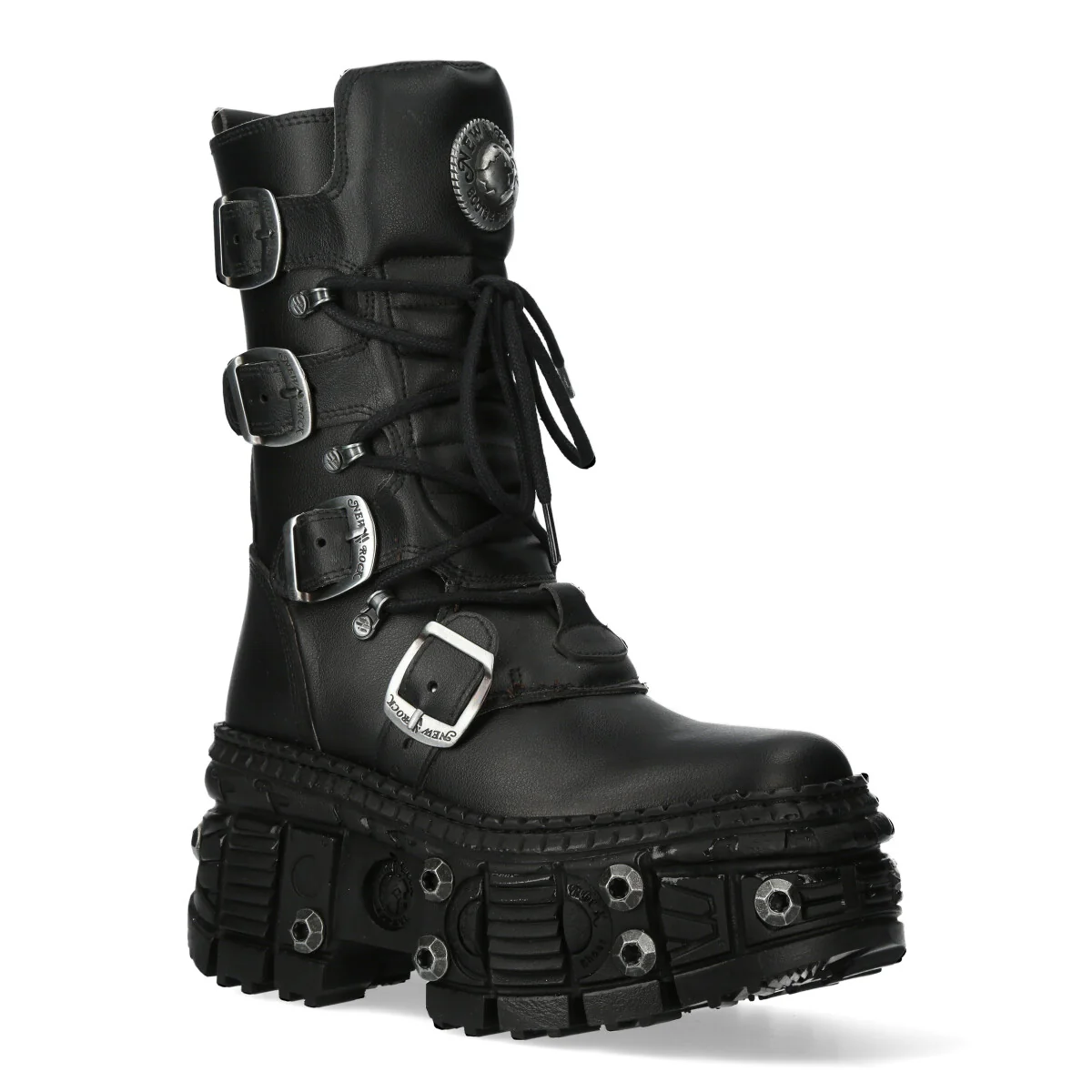 Step into the fusion of gothic and metallic with the M-WALL1473-V11 VEGAN from the WALL collection. Crafted from high-quality synthetic material, this boot showcases New Rock's original design, reloaded with extreme power.